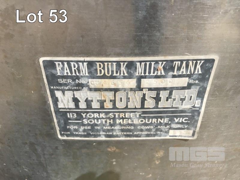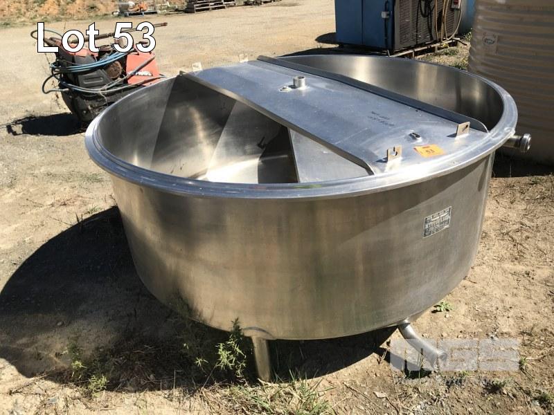 MYTTONS STAINLESS STEEL MILK VAT, 1600 DIA x 600mm (H), 1000 LITRE