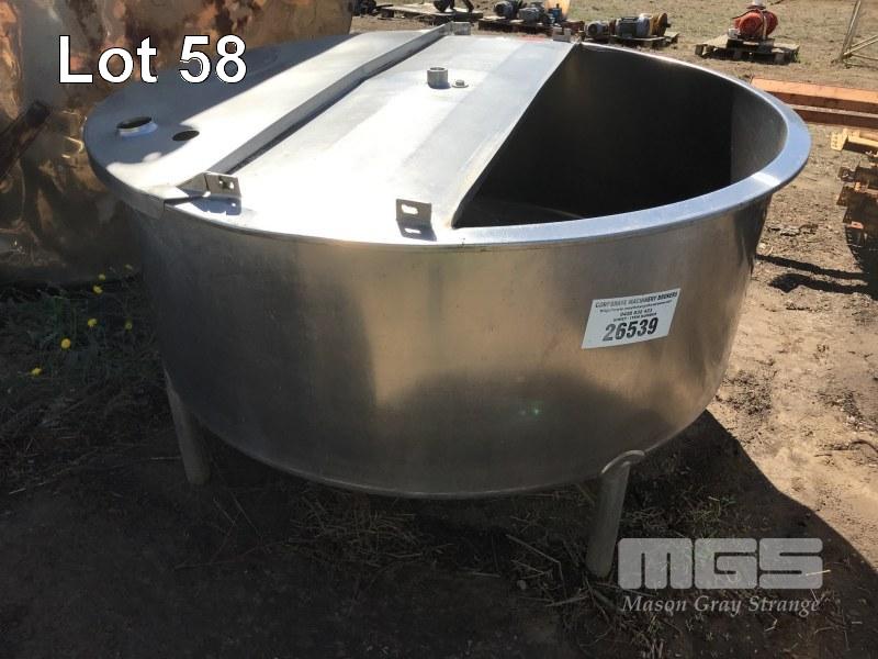 MYTTONS STAINLESS STEEL MILK VAT, 1600 DIA x 600mm (H), 1000 LITRE