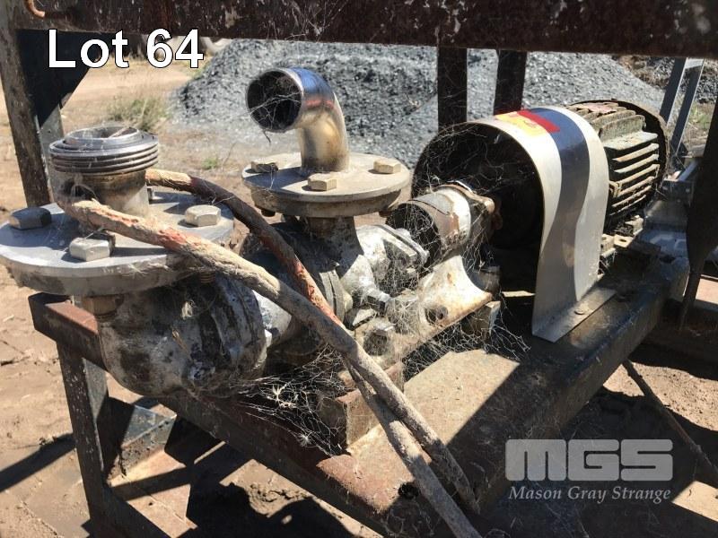 MOTORISED STAINLESS STEEL MONO PUMP MOUNTED ON STEEL BENCH 1450 x 1100 x 900mm