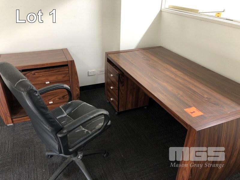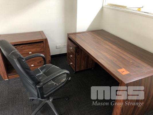 TIMBER LAMINATE DESK, DARK FINISH, 1740 x 900mm, 3 DRAWER UNDER DESK MOBILE, SMALL COMPUTER DESK, 900 x 500mm & GAS LIFT OFFICE CHAIR