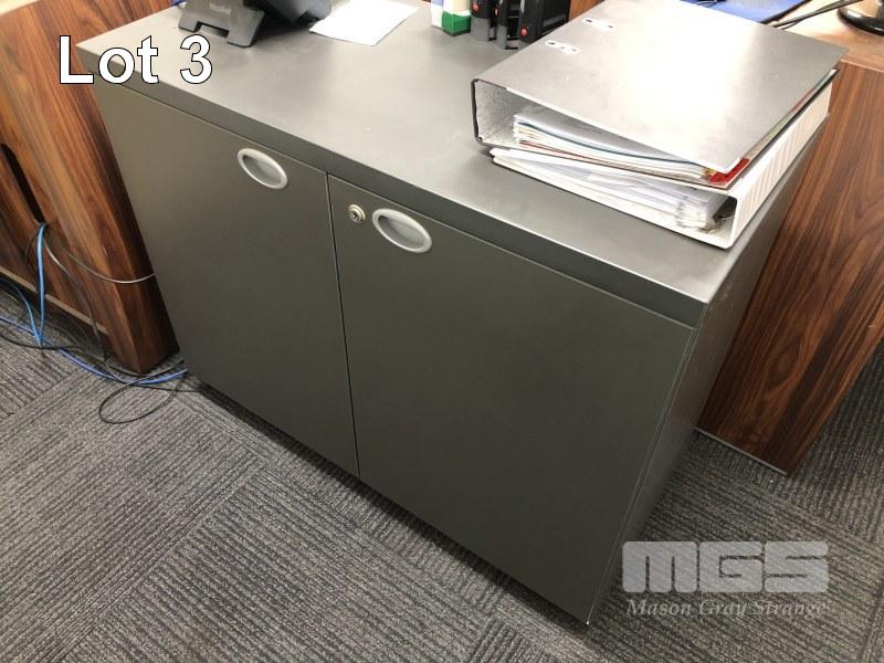 4 DRAWER STEEL FILING CABINET, 2 DOOR LOW STATIONARY CUPBOARD, GRAY LAMINATE, 900 x 400mm