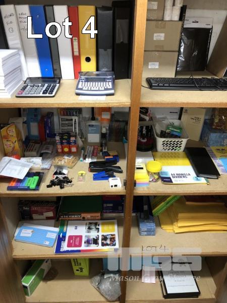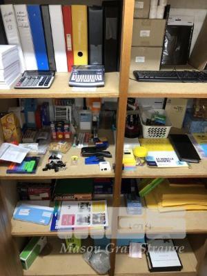 LARGE QUANTITY OF STATIONARY INCLUDING MARKERS, PENS, PAPER, ENVELOPES, LABEL PRINTER, CALCULATORS ETC.