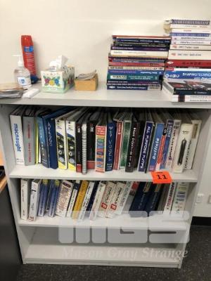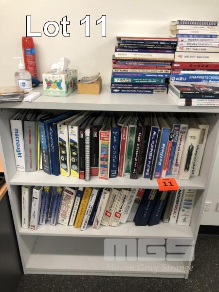 LARGE QUANTITY OF HYDRAULIC PARTS MANUALS & 3 TIER GREY LAMINATE SHELF UNIT