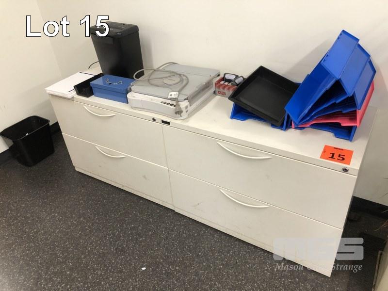 PAIR OF HORIZONTAL 2 DRAWER STEEL FILING CABINETS, 900 x 500 x 680mm (NO KEY)