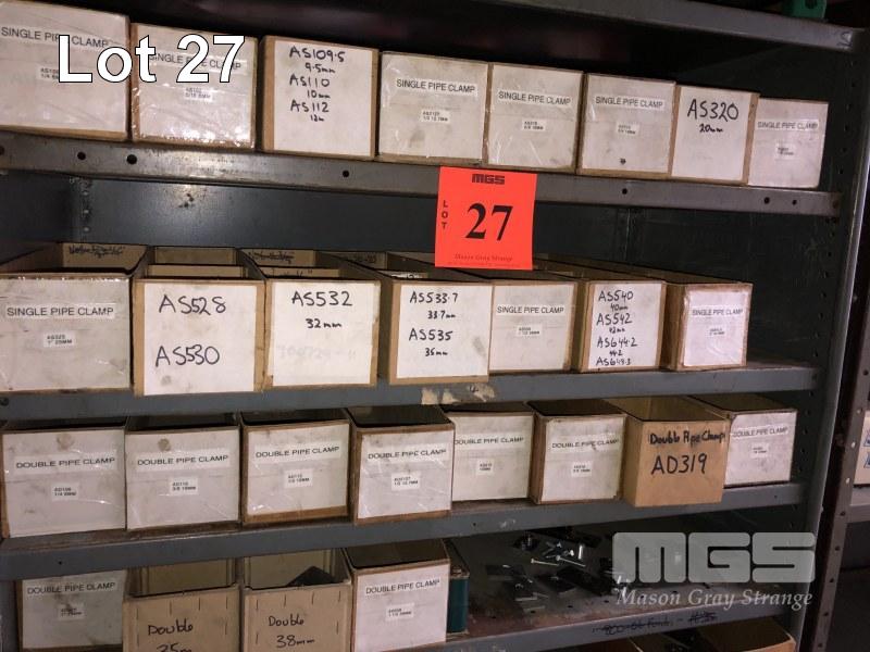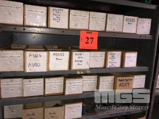 CONTENTS OF 4 SHELVES, SINGLE & DOUBLE PIPE CLAMPS