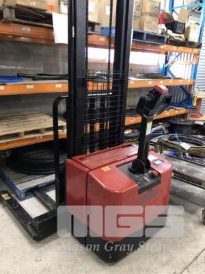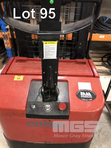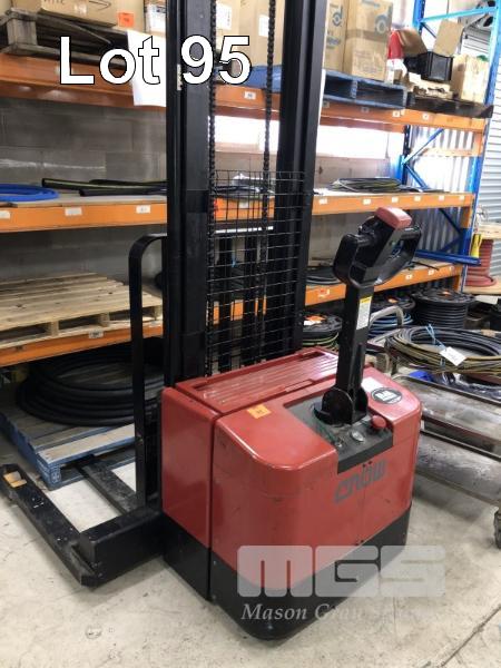 CROWN WALK-BEHIND ELECTRIC PALLET TRUCK, 1,121 HOURS, 2 STAGE MAST, CAP: 1400kg, MODEL: ESA-14, SERIAL: 04030024, FORK LENGTH: 1110mm, INBUILT CHARGER, LIFTING HEIGHT: 4m