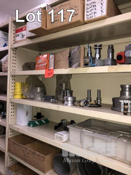 CONTENTS OF BAY, LARGE QUANTITY VARIOUS SIZES QUICK RELEASE FLUID FITTINGS, DICKSON, RELEASE VALVES, PRESSURE GAUGES