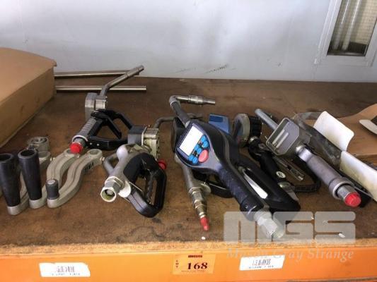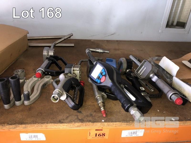 6 x ASSORTED METERED OIL FILL HAND PIECES, CONDITION UNKNOWN & 1 x OIL TAP