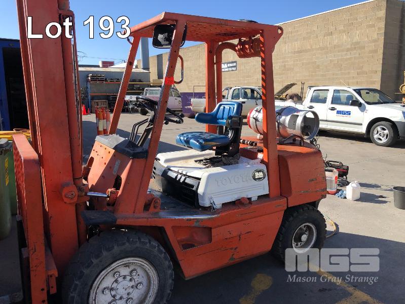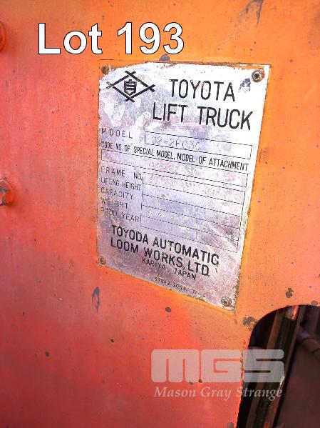 TOYOTA FORKLIFT MOD: 02-2F036 3 TONNE CAPACITY LPG, SIDE SHIFT 2 STAGE SEE THROUGH MAST PNEUMATIC TYRES 4 CYLINDER 2300mm CLOSED HEIGHT