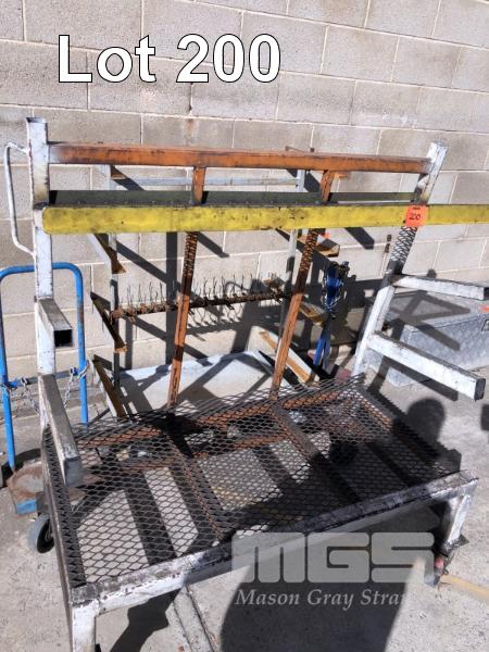 2 x MOBILE STEEL STOCK RACK & SMALL OXY TROLLEY