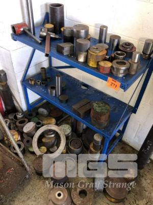 STOCK SHELF, 2 TIER & LARGE QUANTITY STEEL BAR STOCK OFFCUTS