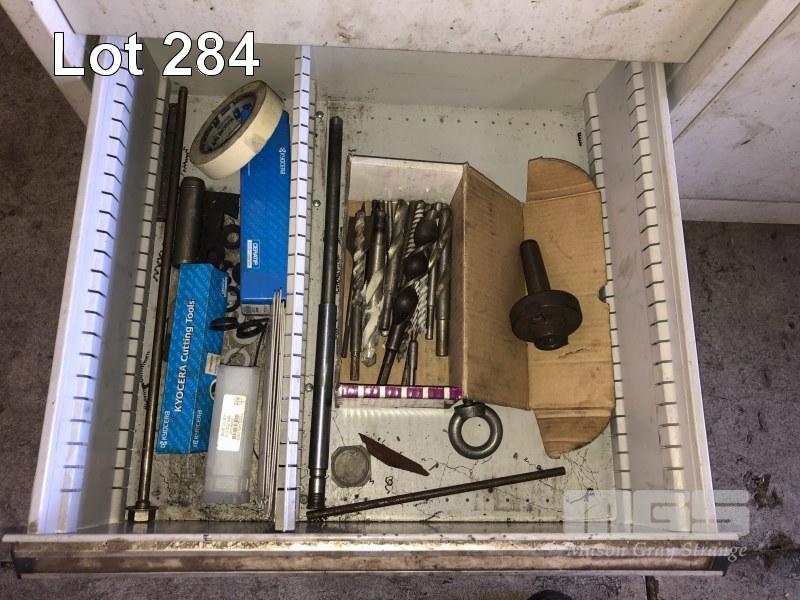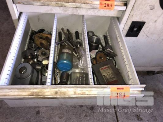 3 x DIGITAL VERNIERS, 150mm, DRILL SET, ASSORTED ROD ENDS, EAR MUGGS, MASONRY DRILLS & TOOL HOLDER, CONTENTS 2 x DRAWERS