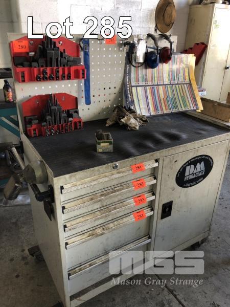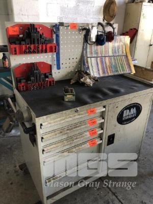 STEEL WORKSHOP BENCH, 1100 x 960 x 580mm (W), MOBILE 5 DRAWER WITH PEGBOARD
