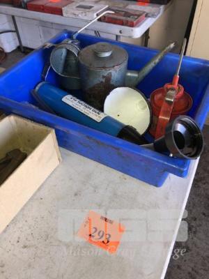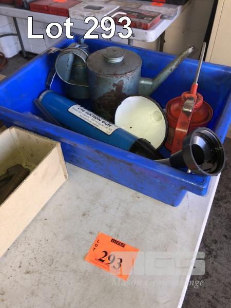 3 x OIL CANS & OIL SUCTION PUMP IN TRAY