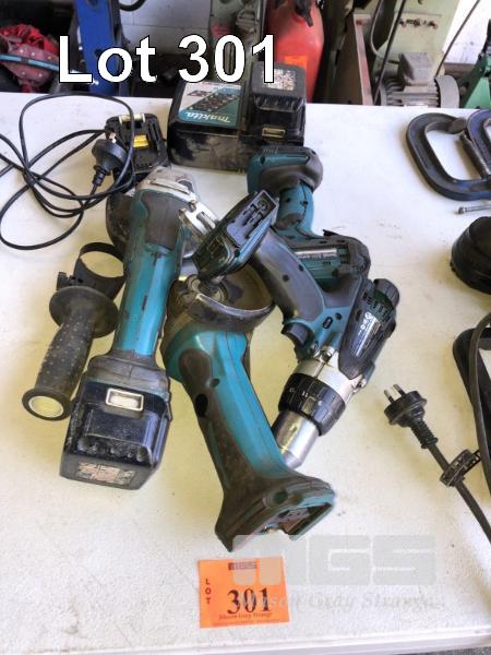 MAKITA SET INC 2 x DRILLS, 2 x ANGLE GRINDERS, 2 x BATTERIES & CHARGER