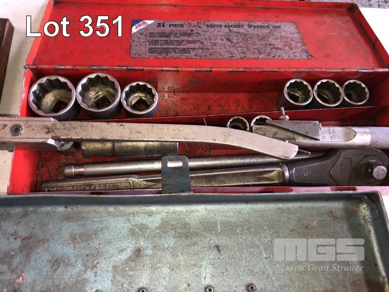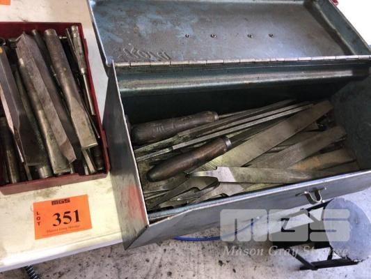 ASSORED CHISELS, 3/4" DRIVE, SOCKETS, 3/4" TENSION WRENCH & TOOL BOX OF FILES