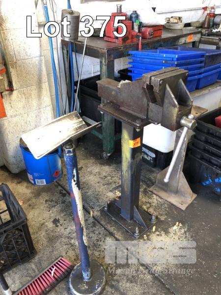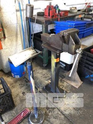 8" FABRICATED BENCH VICE ON STAND PLUS ADJUSTABLE HEIGHT INFEED STAND