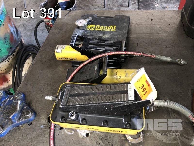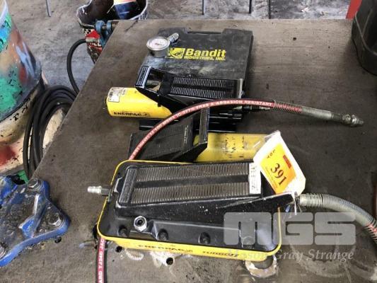 ASSORTED ENERPAC AIR/OIL CONTROL UNITS, 2 x GAUGES & BANDIT INDUSTRIAL TEST KIT