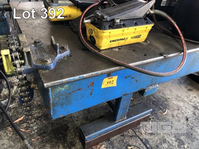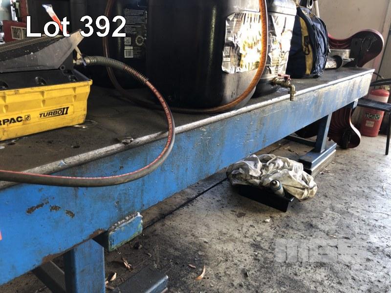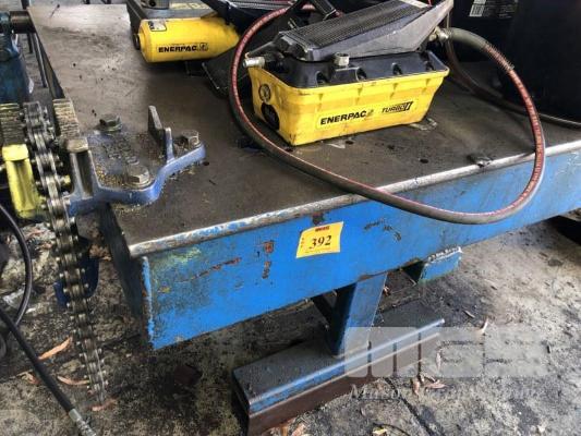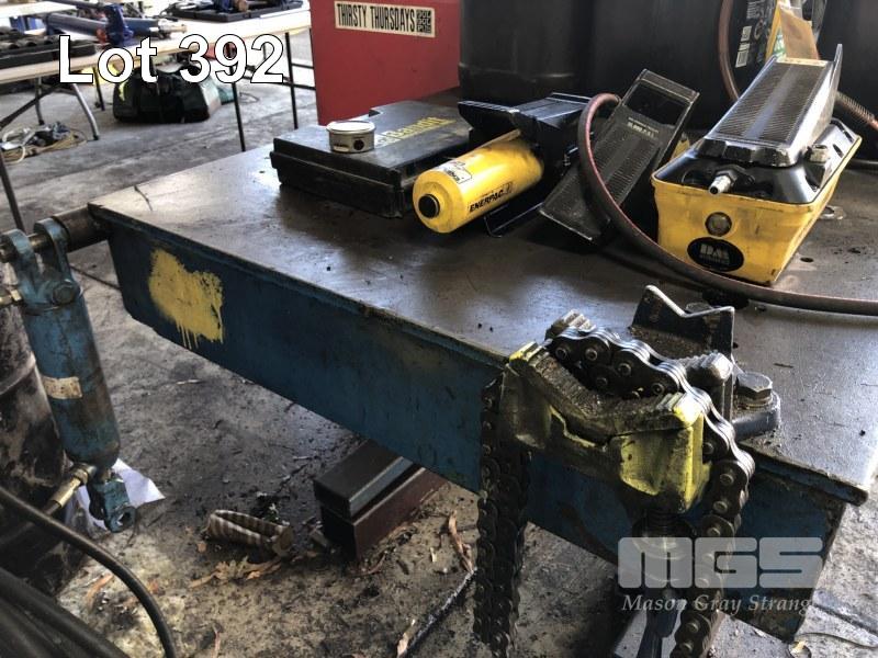 EXTREME HEAVY DUTY LAYOUT BENCH, 3000 x 1000 x 20mm 20mm PLATE STEEL TOP HEAVY DUTY CHASSIS & LEGS INCLUDES CHAIN PIPE VICE WITH HYDRAULIC RAM & HOSE.
