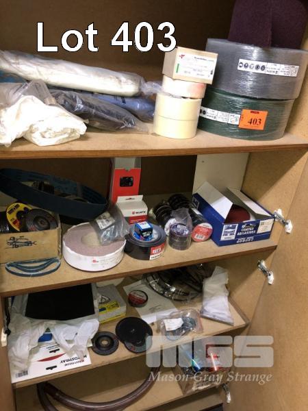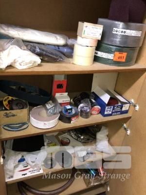 WURTH CLEANING CLOTH, ELEC/TAPE, BOX TAPE,SANDING DISCS, WURTH LINISHING STRIP, CUTTING & GRINDING DISCS, BLUE COVER SHEETS CONTENTS CUPBOARD