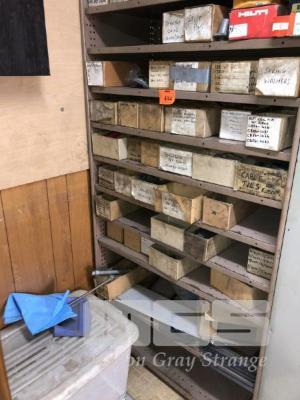 HARDWARE, NUTS, BOLTS, WASHERS, CLIPS, BEARING BLOCK, HILTI & BREMICH ANCHOR BOLTS, WALL BRACKETS & 1 x TUB HARDWARE CONTENTS SHELF UNIT