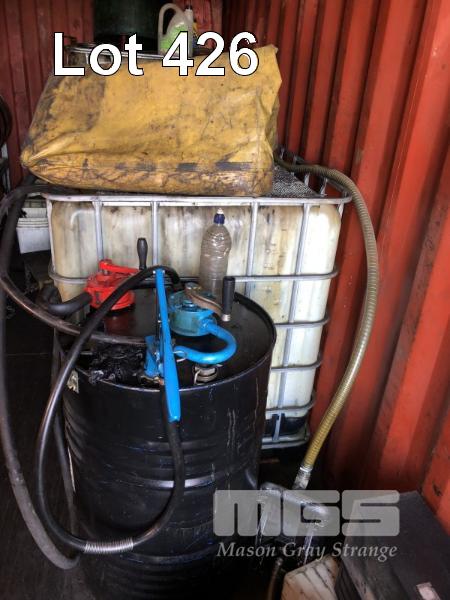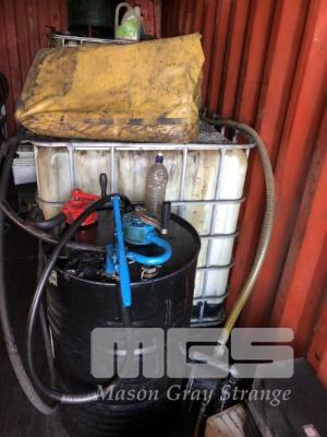 WASTE OIL SYSTEM, 1000 LITRE IBC ON STAND 1" STM AIR/OIL DIAPHRAM PUMP 1000 LITRE IBC SETTLING TANK 205 LITRE DRUM & DRUM PUMP