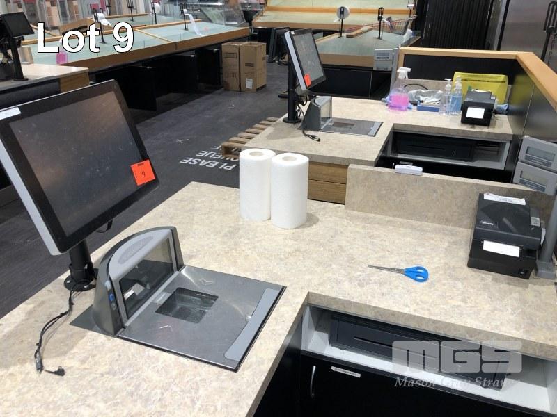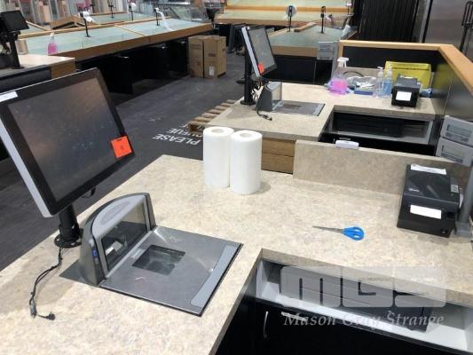POS SYSTEM WITH CHECKOUT DESK, DATALOG POS MOD: MAGELLAN 8400 LCD SCREEN, SCAN WEIGH CELL & CUSTOMER SCREEN, DATALOG WEIGH READOUTS & DOCKET PRINTERS WITH CASH DRAWER