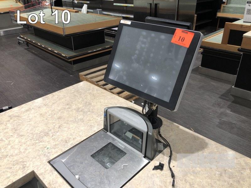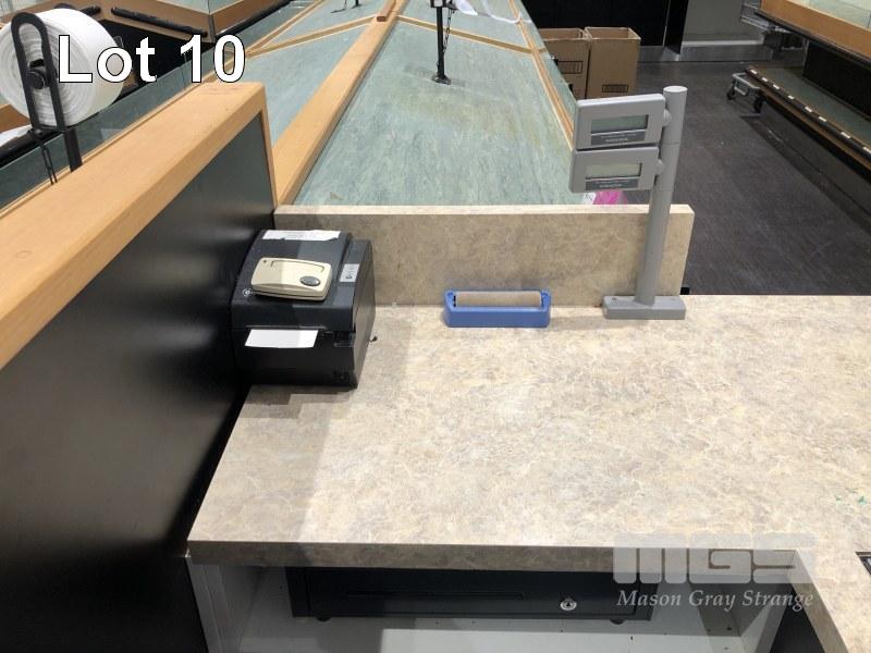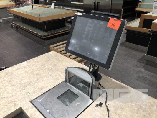 POS SYSTEM WITH CHECKOUT DESK, DATALOG POS MOD: MAGELLAN 8400 LCD SCREEN, SCAN WEIGH CELL & CUSTOMER SCREEN, DATALOG WEIGH READOUTS & DOCKET PRINTERS WITH CASH DRAWER