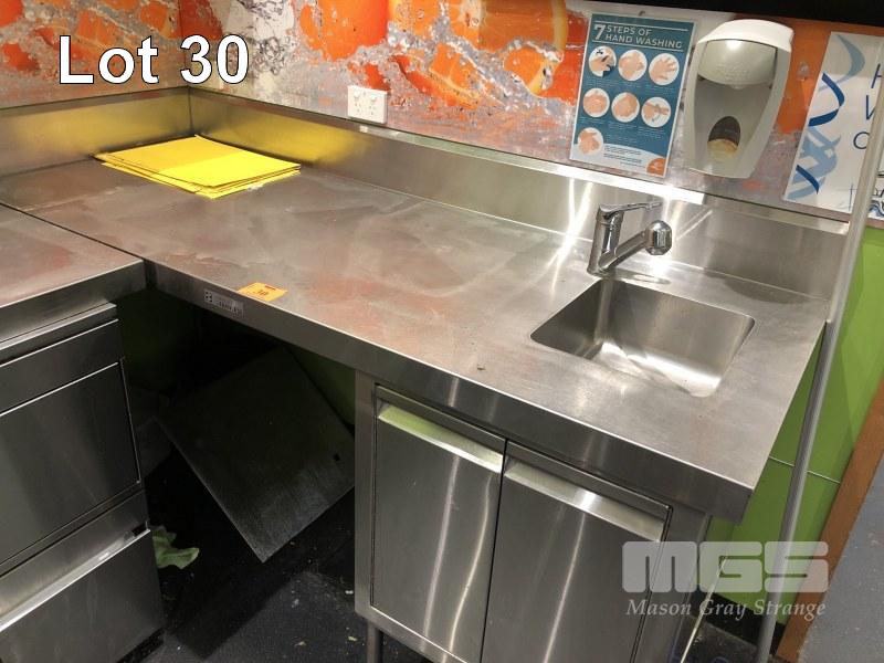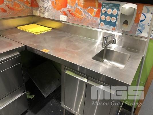 STAINLESS STEEL BENCH WITH BUTLERS SINK, 1800 x 700 x 910mm (H) & UNDERBENCH CABINET