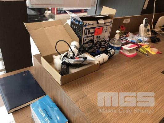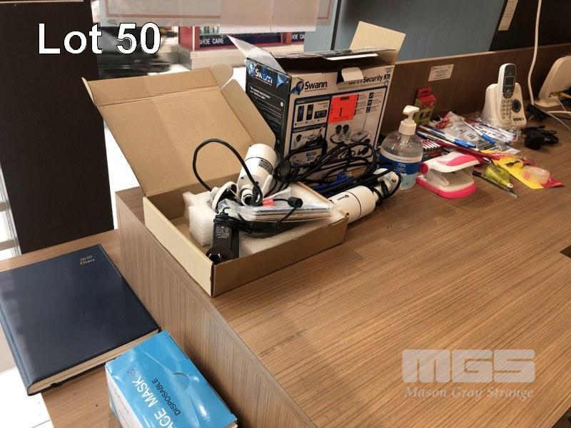 SWANN SECURITY CAMERA SET INC 2 x CAMERAS, POWER SUPPLY, ETC, BLACKBOARD, HOMEMAKER HOT CODL WATER FILTER, WATER DISPLAY & ASSORTED STATIONERY