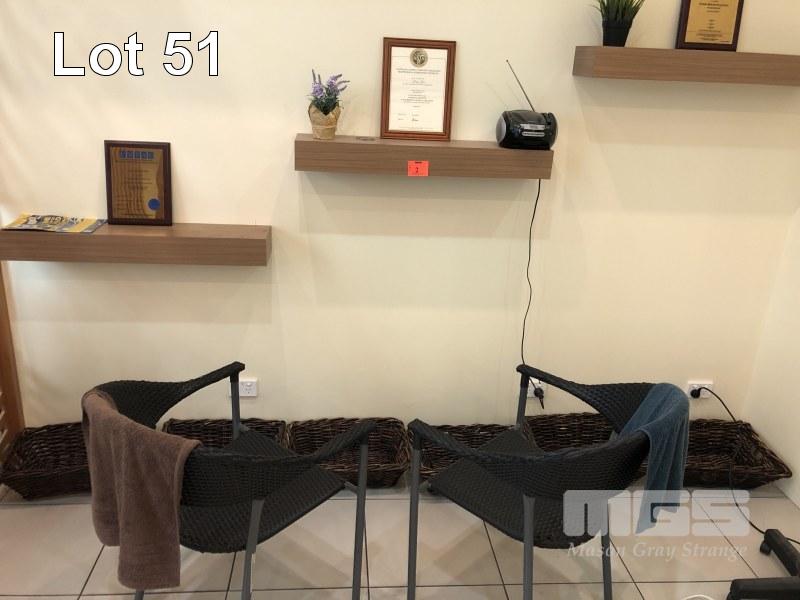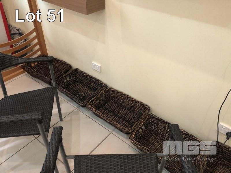 2 x CUSTOMER CHAIRS, WICKER & STEEL FRAME, 6 x BASKETS, LAMP, RADIO CASSETTE PLAYER & 2 x ELECTRIC HEATERS