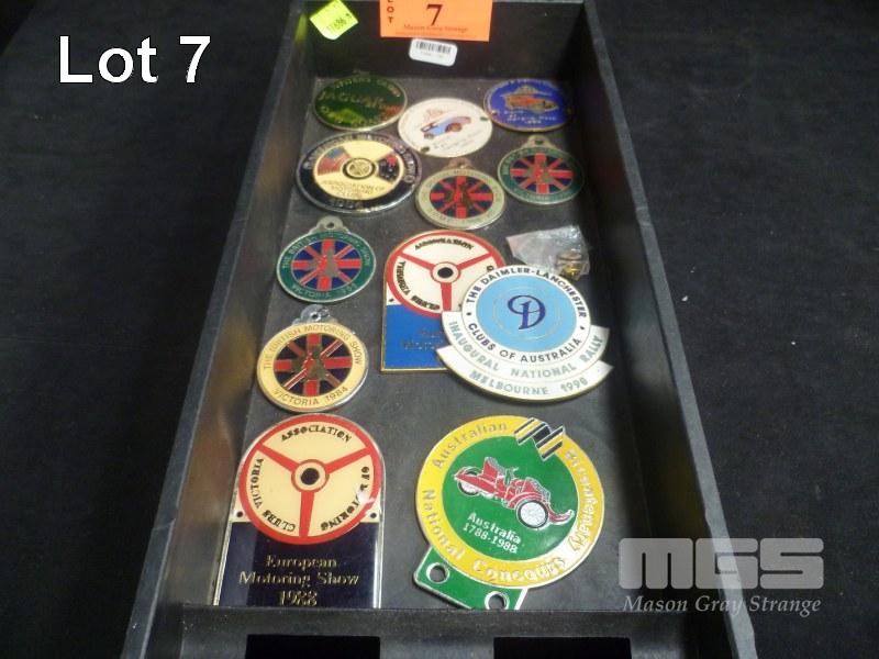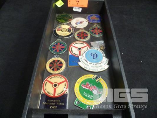 ASSORTED AUTOMOTIVE BADGES INC BRITISH MOTORING, AMERICAN MOTORING, AUSTRALIAN BICENTENARY, ETC