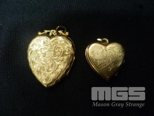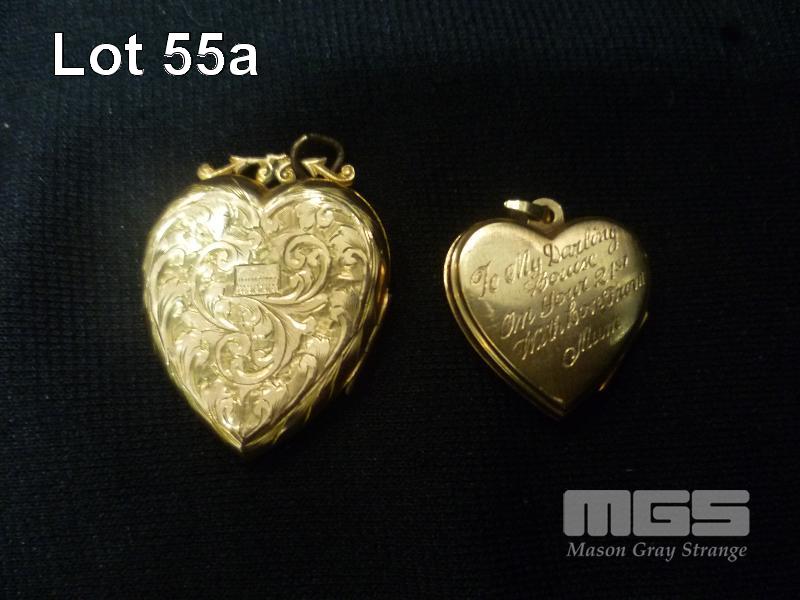2 X GOLD, HEART, LOCKET PENDANTS, BOTH MARKED 375, TOTAL WEIGHT 5.7 grams