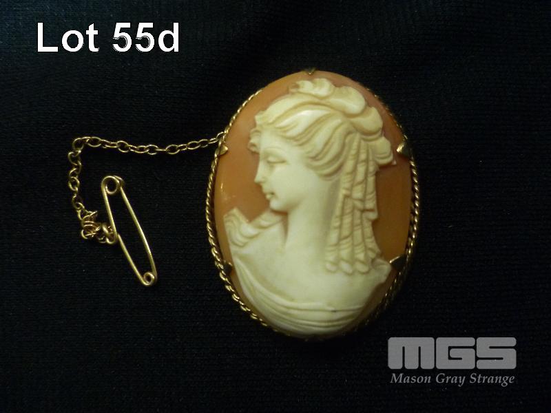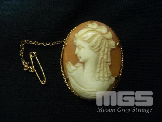 CAMEO BROOCH WITH GOLD TRIM, MARKED 375