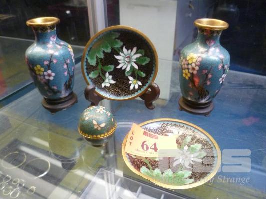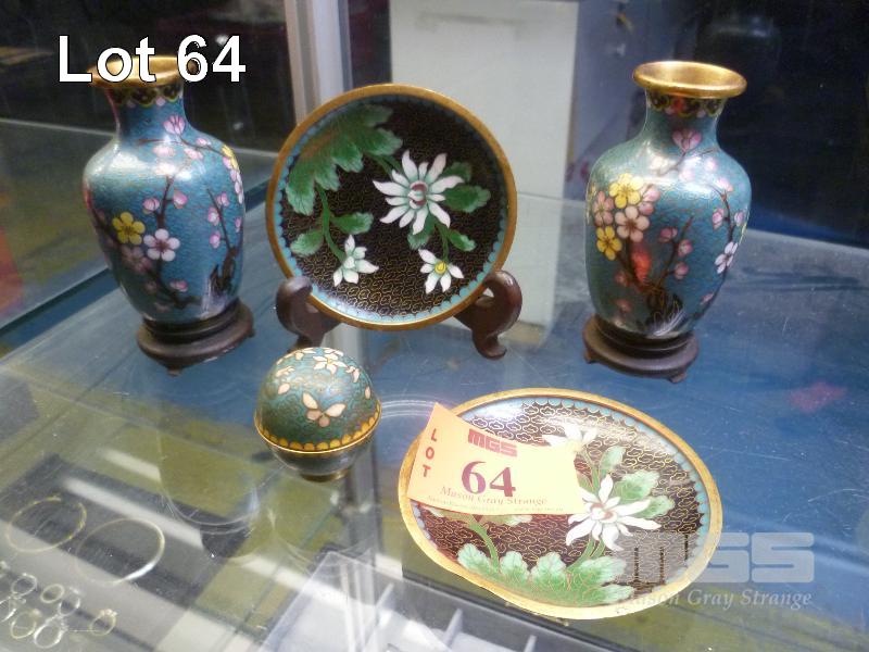 COLLECTION CLOISONNE VASES, PLATES & PILL BOX