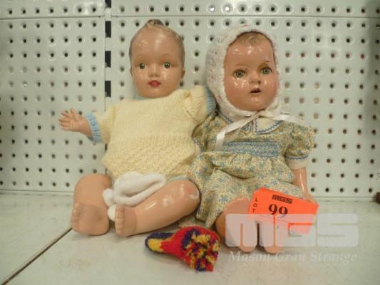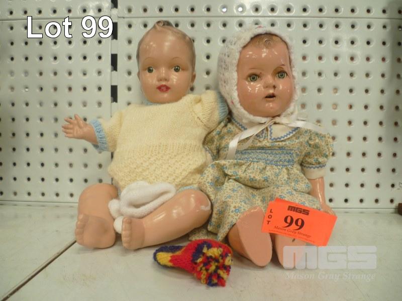 2 X VINTAGE BABY DOLLS, SITTING HEIGHT 29cm