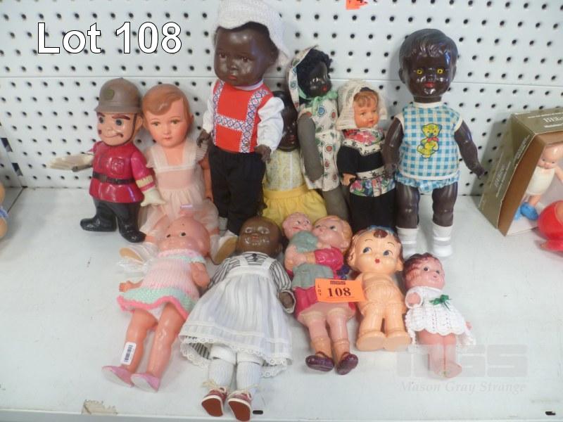 ASSORTED EARLY PLASTIC DOLLS, SOME IN TRADITIONAL DRESS