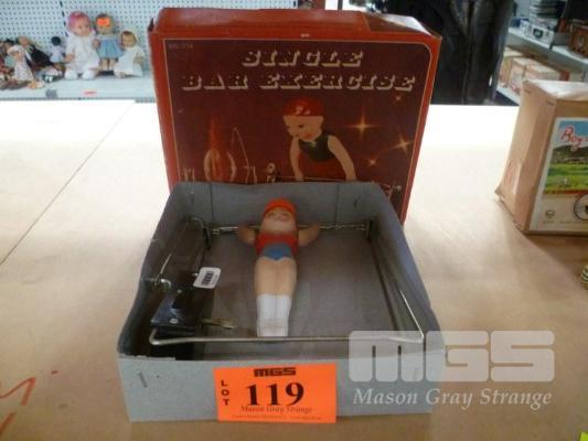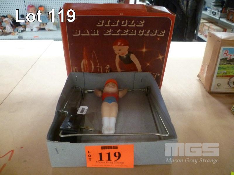 VINTAGE WIND UP TOY, "SINGLE BAR EXERCISE" IN ORIGINAL BOX