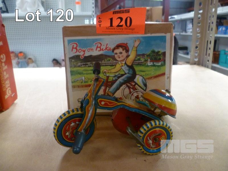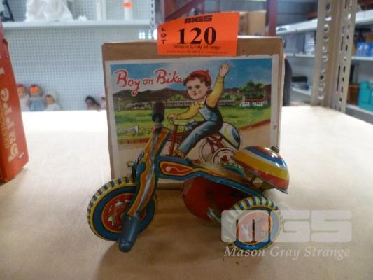 VINTAGE WIND UP TOY, "BOY ON BIKE" IN ORIGINAL BOX, MADE IN JAPAN (BOY NOT INCLUDED)