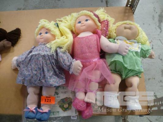 3 x CABBAGE PATCH KIDS INC GIRL IN GREEN DRESS, GIRL IN FLORAL DRESS & GIRL IN PINK DRESS
