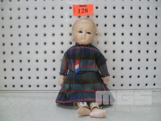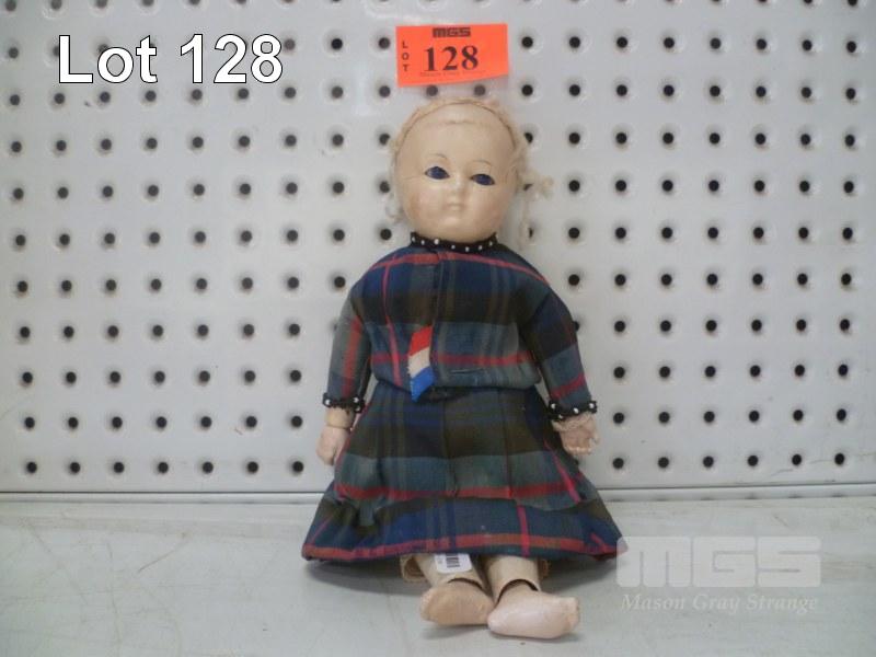 VINTAGE DOLL, YOUNG GIRL, TARTAN DRESS, 30cm (H)