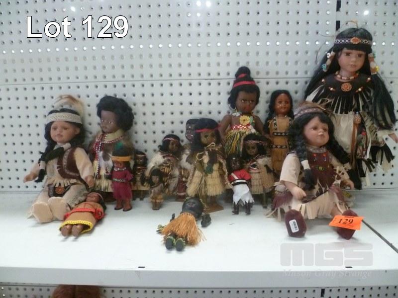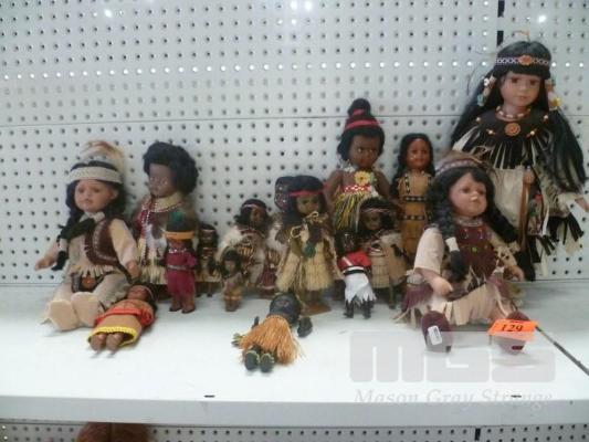 ASSORTED PLASTIC & PORCELAIN DOLLS, TRIBAL OUTFITS
