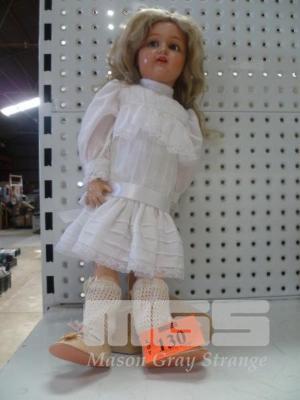 PLASTIC DOLL, YOUNG GIRL, WHITE OUTFIT ON STAND, 45cm (H)