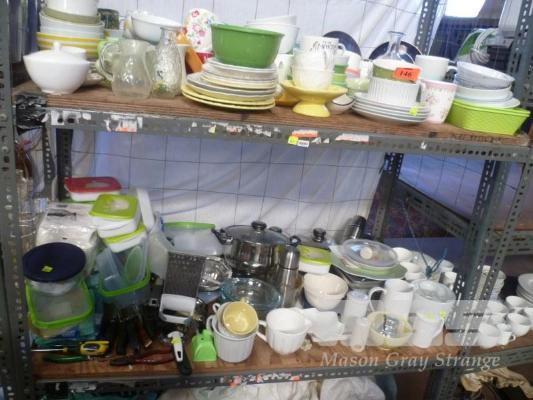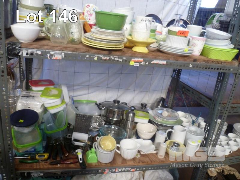ASSORTED DINNERWARE, COOKWARE, KITCHENWARE, ETC, 2 x BAYS