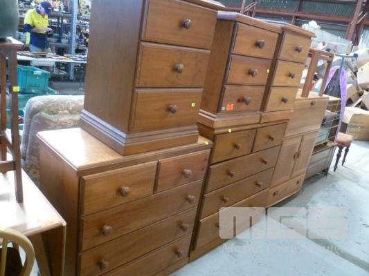 PINE BEDROOM FURNITURE INC 3 x BEDSIDE CABINETS & 2 x TALL BOYS