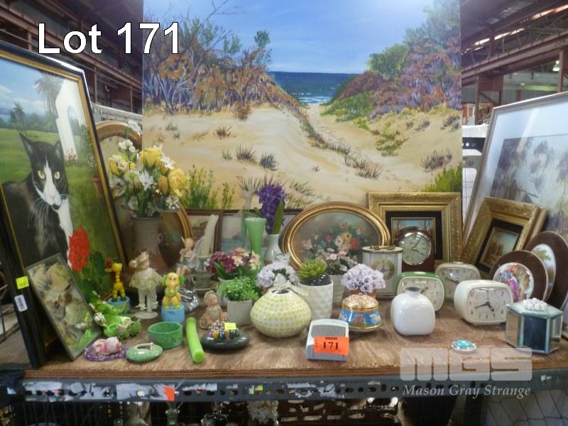 ASSORTED PRINTS & PAINTINGS, CLOCKS, VASES, ETC