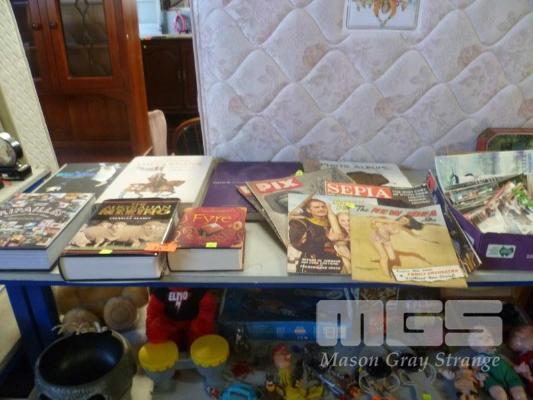 HARD COVER BOOKS, VINTAGE MOVIE AND PHOTO MAGAZINES, A COLLECTION OF 1970s "JET" AFRO-AMERICAN NEWS MAGAZINE, VINTAGE TINS ETC