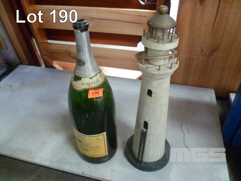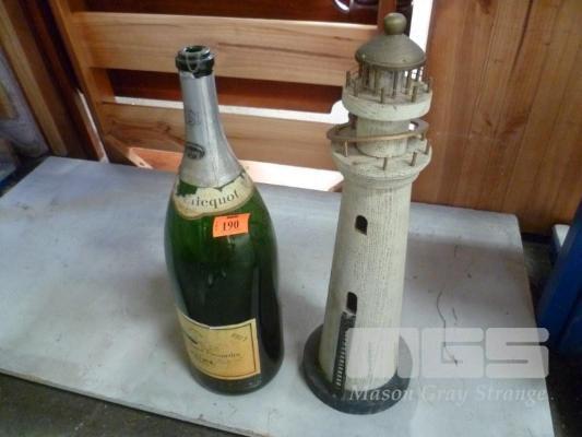 "VEUVE CLICQUOT" SALMANAZAR (9L) CHAMPAGNE BOTTLE AND LARGE ORNAMENTAL LIGHTHOUSE.