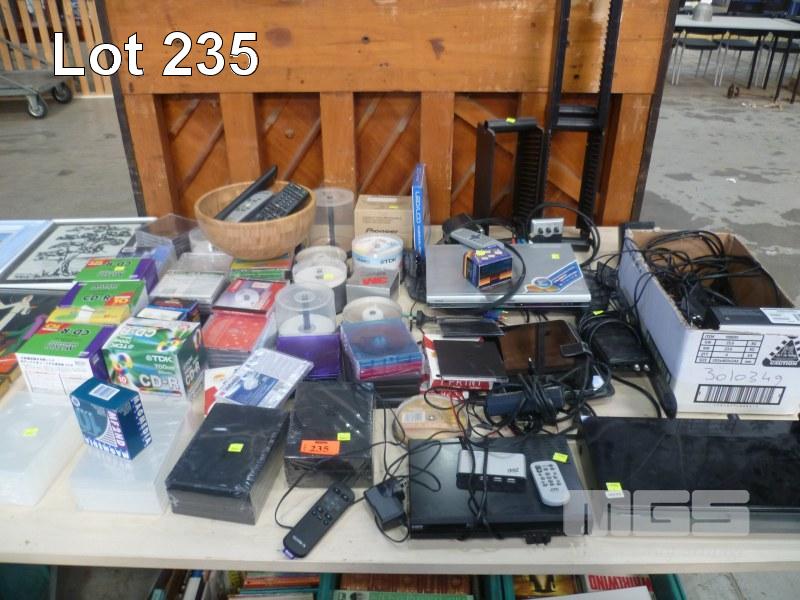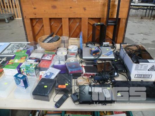 ASSORTED BLANK CD/DVD'S, ASSORTED CABLES, ETC, 1 x TABLE