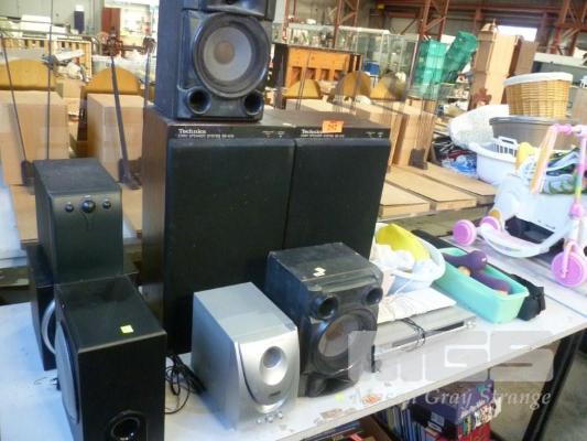 ASSORTED STEREO SPEAKERS, PIONEER DVD PLAYER, DV-393, (NO REMOTE), EXERCISE EQUIPMENT, ETC, 1 x TABLE